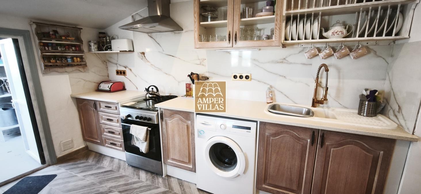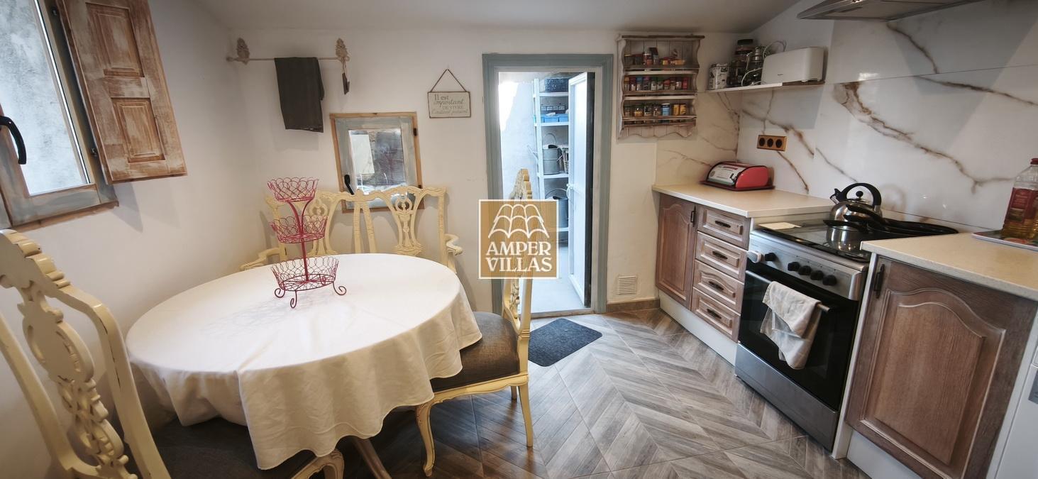 Уютный деревенский дом, на первом этаже которого расположены: крытая терраса с фасада, гостиная с камином, отдельная кухня, 2 спальни, ванная комната с душевой кабиной, задний дворик с частично крытой зоной. На втором этаже, с отдельным входом, есть еще одна полуоткрытая терраса у входа, 2 спальни, ванная комната с душем и гостиная с выходом на террасу с задней стороны дома. Дом частично отремонтирован, но еще предстоит доделать некоторые работы.