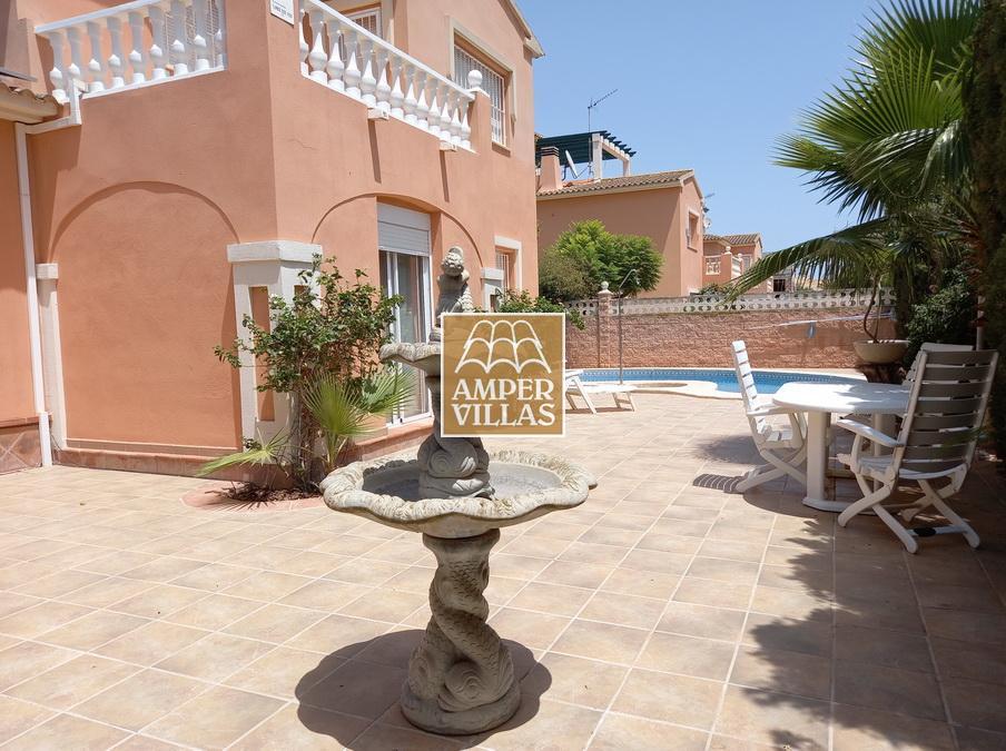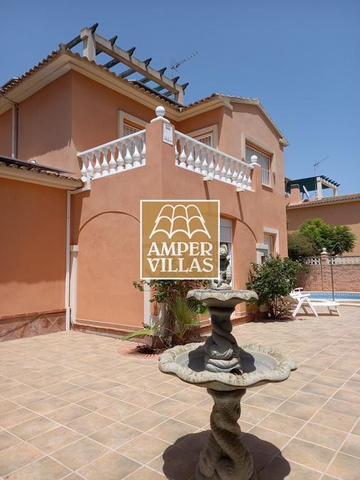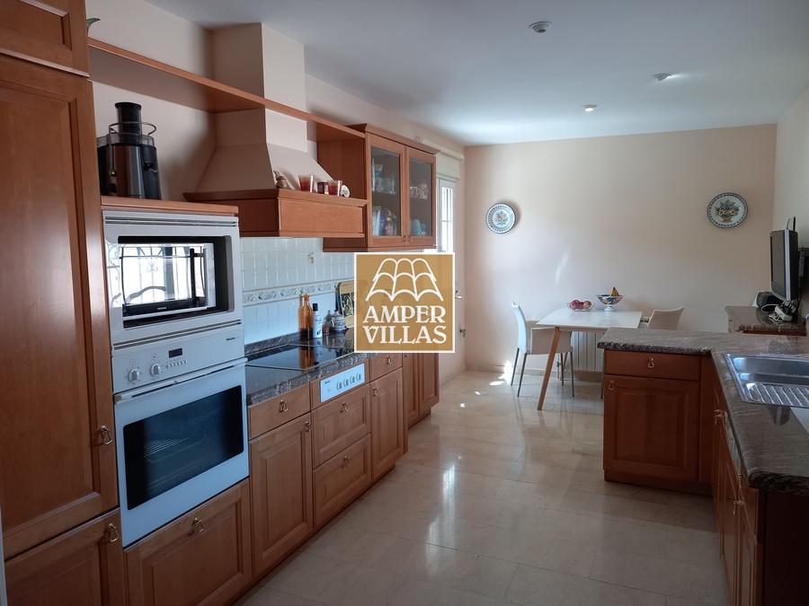 Villa in Albir close to all services and the centre, yet in a quiet setting. The house is distributed in 3 bedrooms, 3 bathrooms (1 en suite), a spacious living-dining room, a large fully equipped kitchen with direct access to the terrace. Large garage with capacity for 2 cars, large storage room, laundry room and basement suitable for use as an office, gym, games room or guest room. Gas central heating, air conditioning, solar energy, private pool, solarium with beautiful views and flat plot.