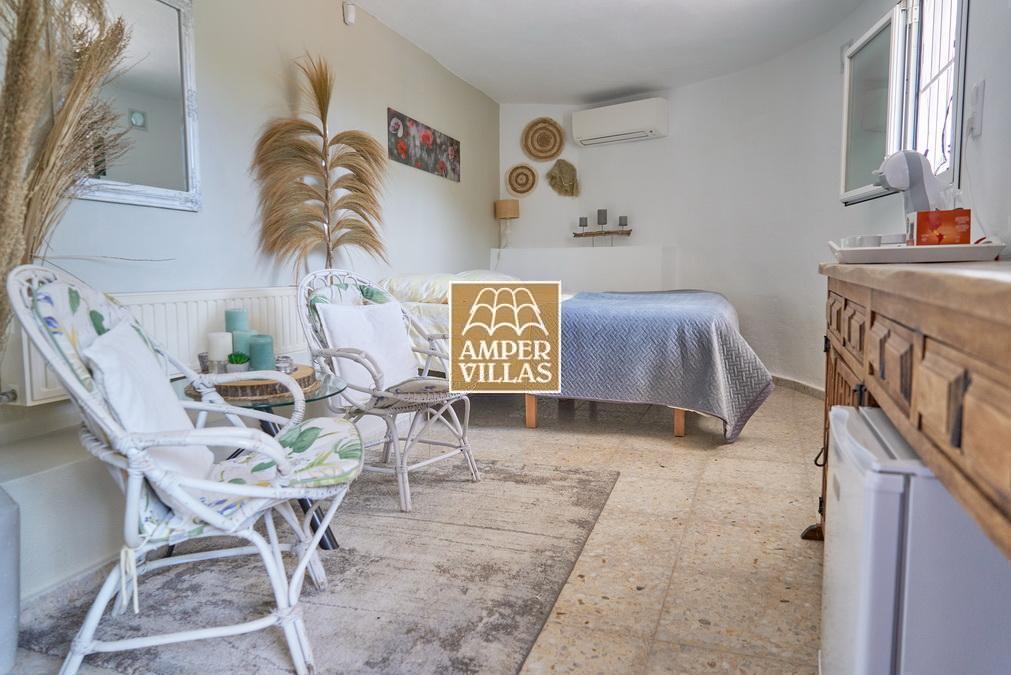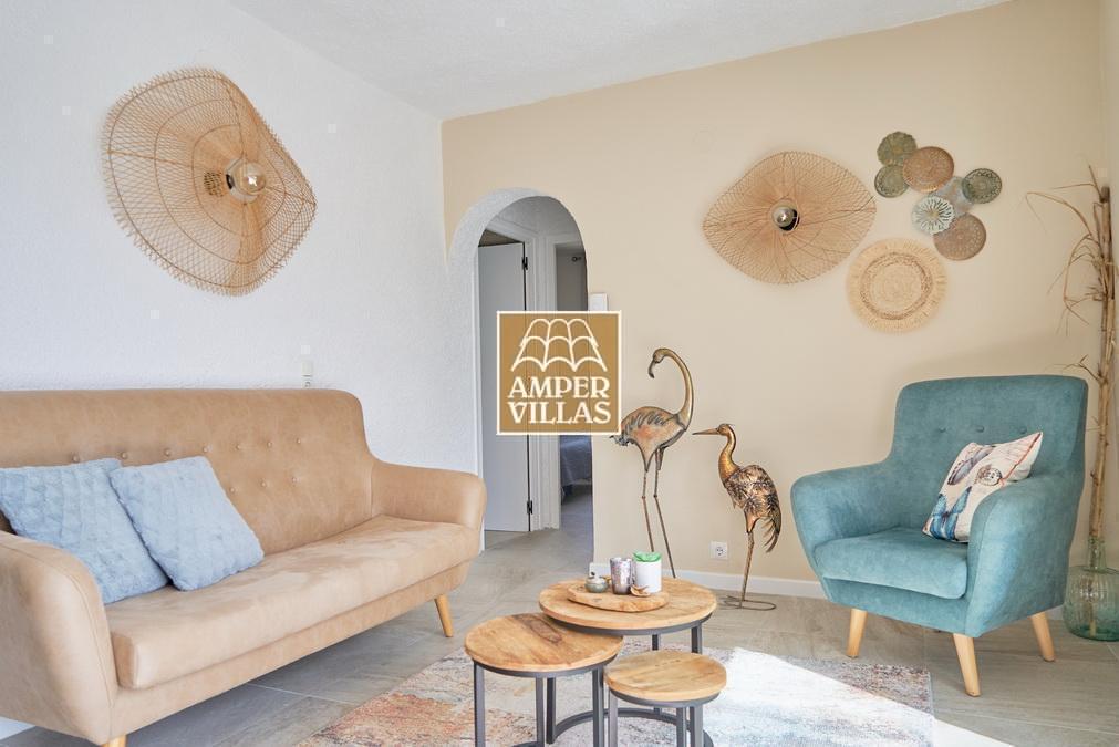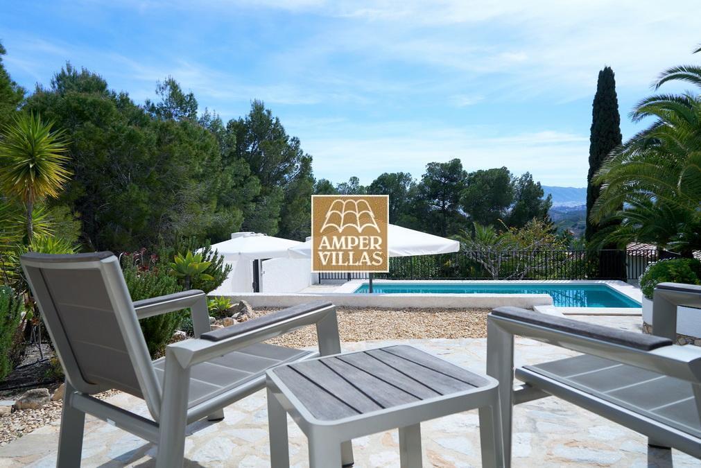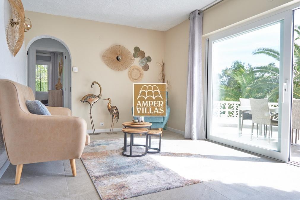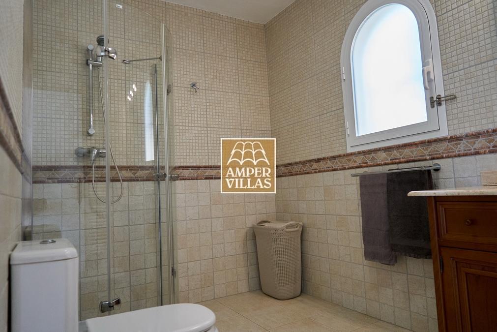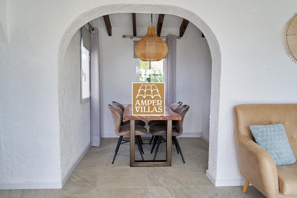 Cozy villa with a lovely Mediterranean garden and beautiful views of the sea and Altea. The main floor includes a living-dining room, equipped open-plan kitchen, 2 bedrooms, a full bathroom, and a large covered and open terrace. The lower floor includes a guest room with a bathroom and a large terrace. There is a garage for 2 cars, a beautiful pool with a large terrace, a large storage room, gas heating, air conditioning, and plenty of sunlight. Located in a green area, very quiet and private.